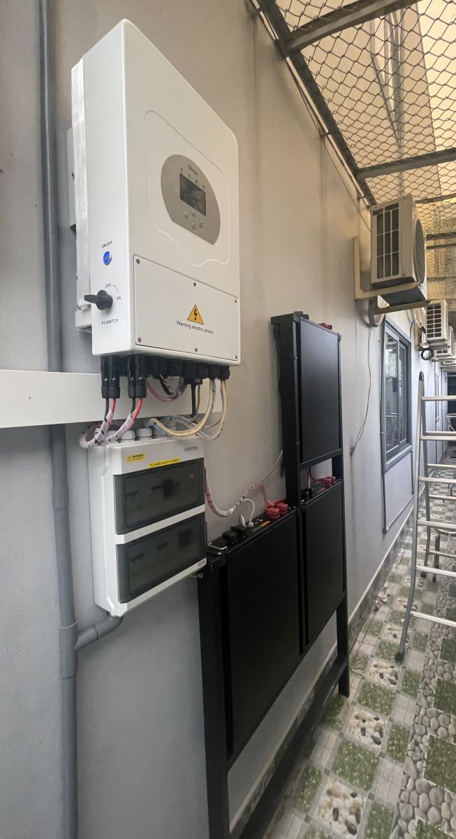 1 Biến tần Deye 8kw hydrid cao cấp + 3 pack acquy GenixGreen 5,12kw siêu mỏng được đi gọn gàng trong ống điện