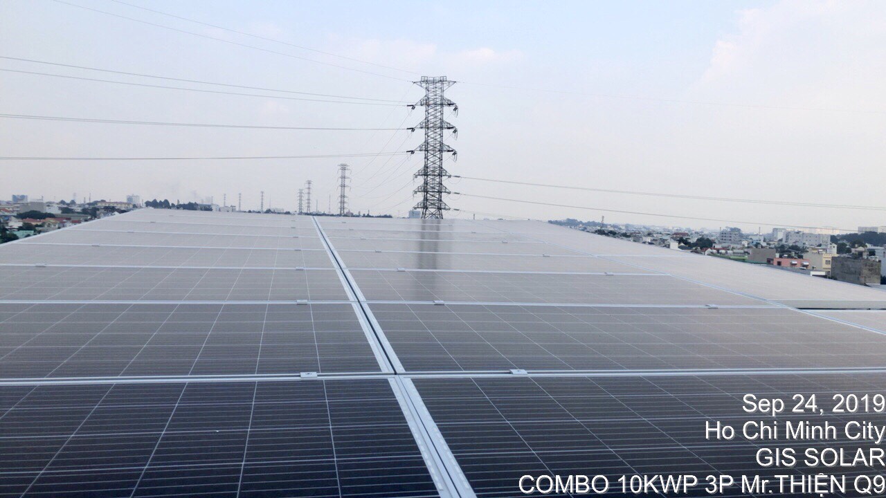 + Khung sắt được dựng trên phần mái, tạo nên giá đỡ chắc chắn cho pin năng lượng mặt trời